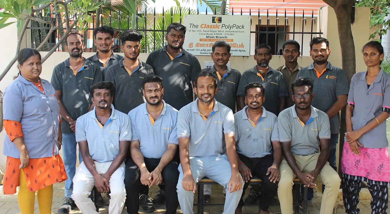 We’re one of the few companies in Tamil Nadu that recycle plastic — proudly GRS (Global Recycled Standard) certified, ensuring eco-friendly and responsible production